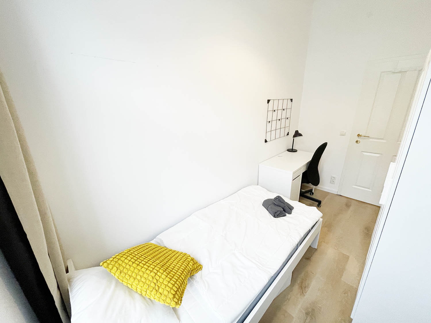 Each room is fully furnished with a comfortable bed, fresh linen, wardrobe, and workspace. The apartment includes a fully equipped kitchen, washing machine, and high-speed internet.