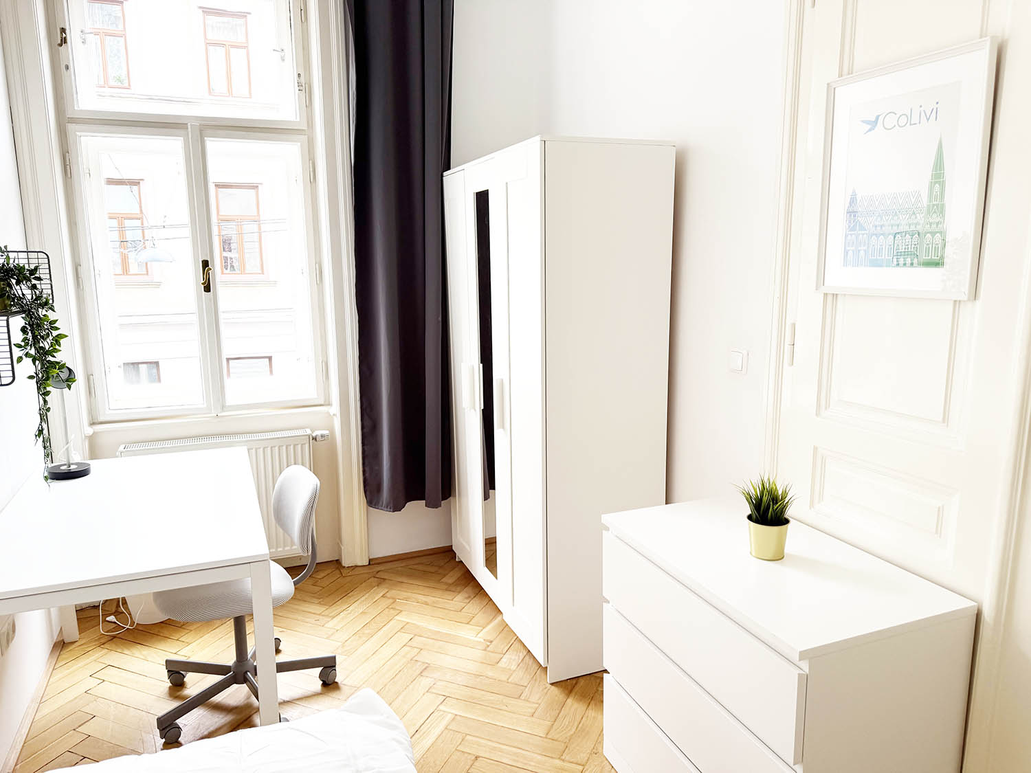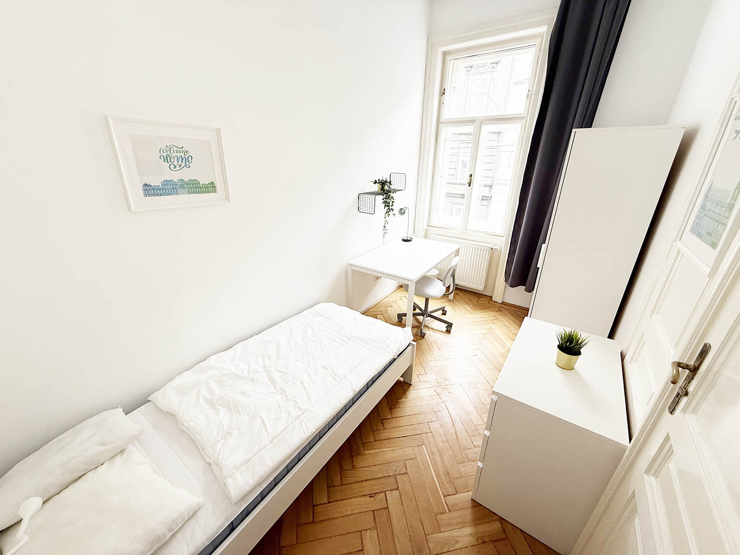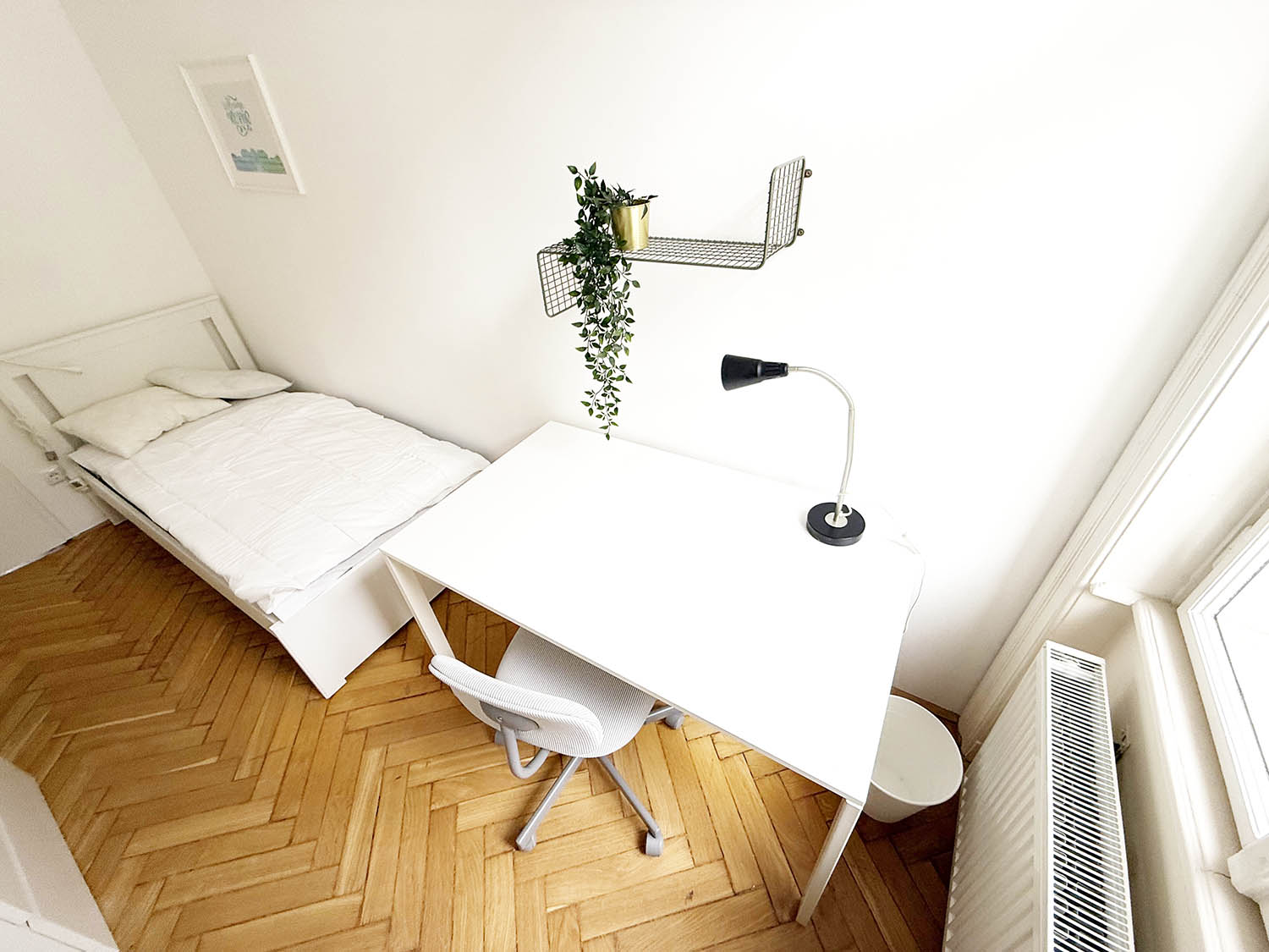 The flat is newly refurbished and of very high quality. The very high ceiling and makes the flat very bright and gives it the classic Viennese style. It also has a big and brand new spacious kitchen, where you can kick back with your flatmates and cook together.
