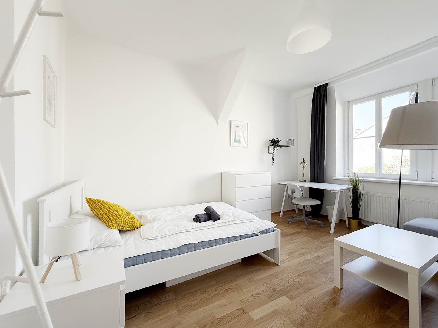 Your private room is, bright and quiet – the perfect place to unwind or focus. The apartment includes a fully equipped kitchen, a spacious bathroom with a bathtub, a separate toilet, and shared living/dining space. A washing machine and high-speed internet are available. All utilities (heating, electricity, internet, etc.) are included in the rent – just bring your suitcase and move in!