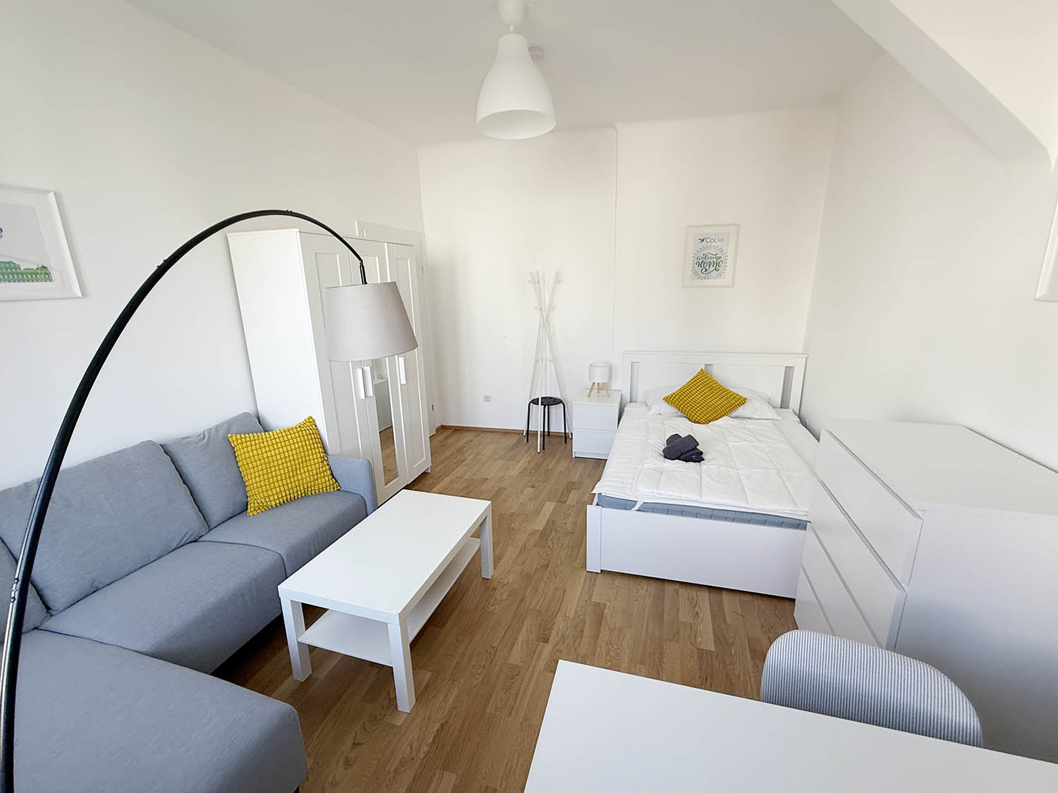 The area around offers everything you need: supermarkets, bakeries, restaurants, indie shops, and some of Vienna’s best cafés are just around the corner. The Brunnenmarkt and the lively Josefstädter Straße are nearby, and parks like Schloss Schönbrunn or Hamerlingpark are perfect for relaxing.