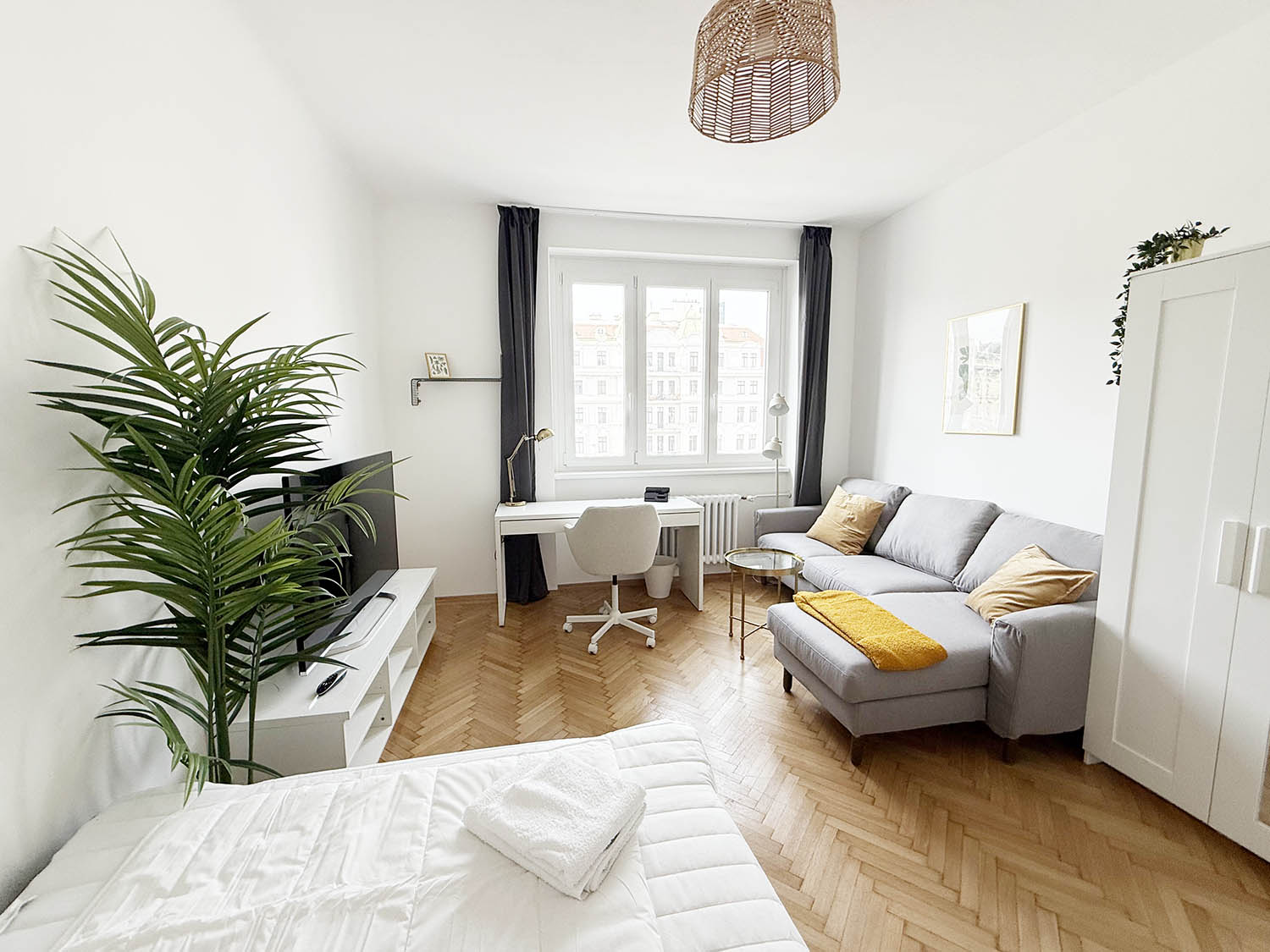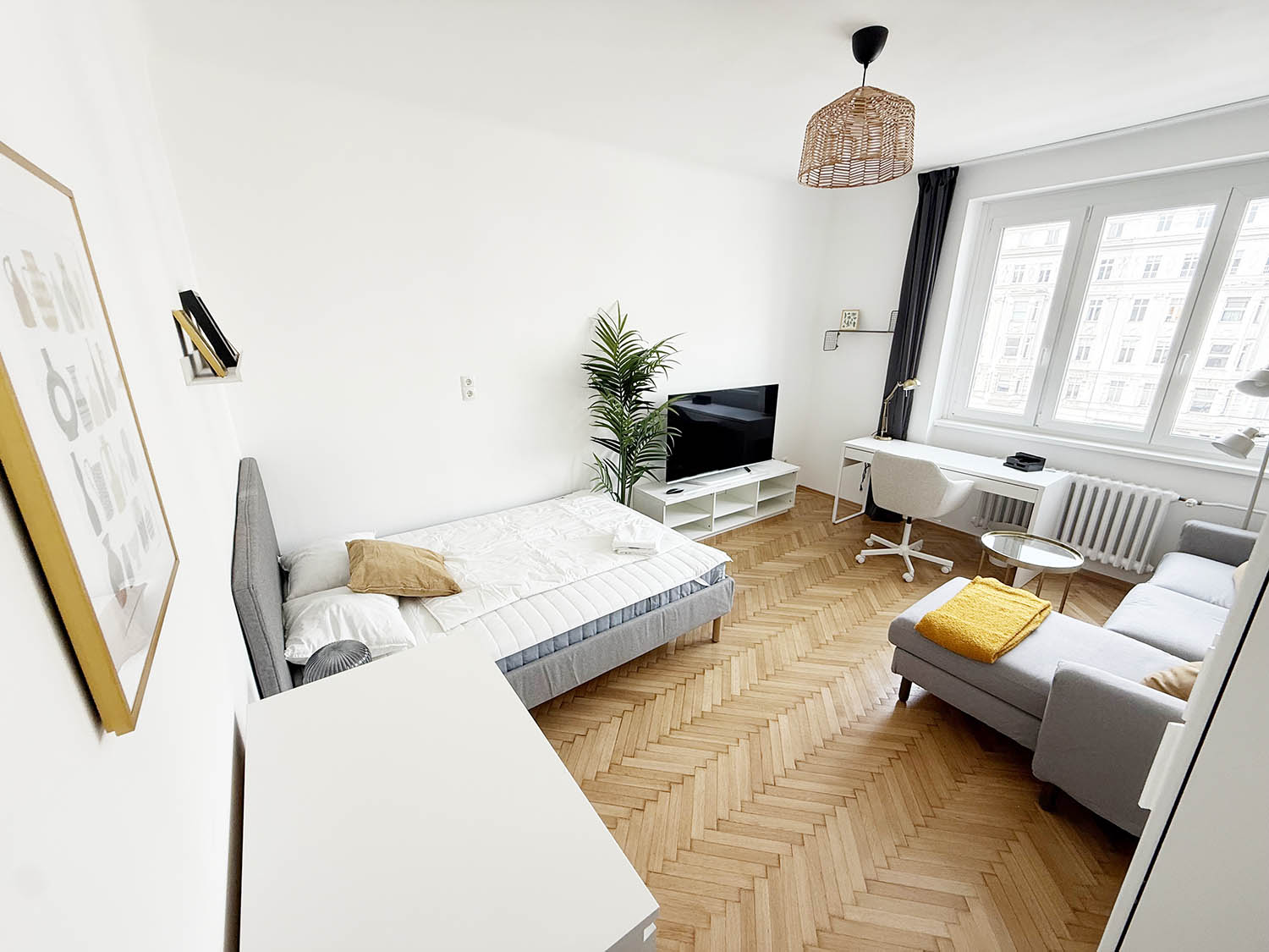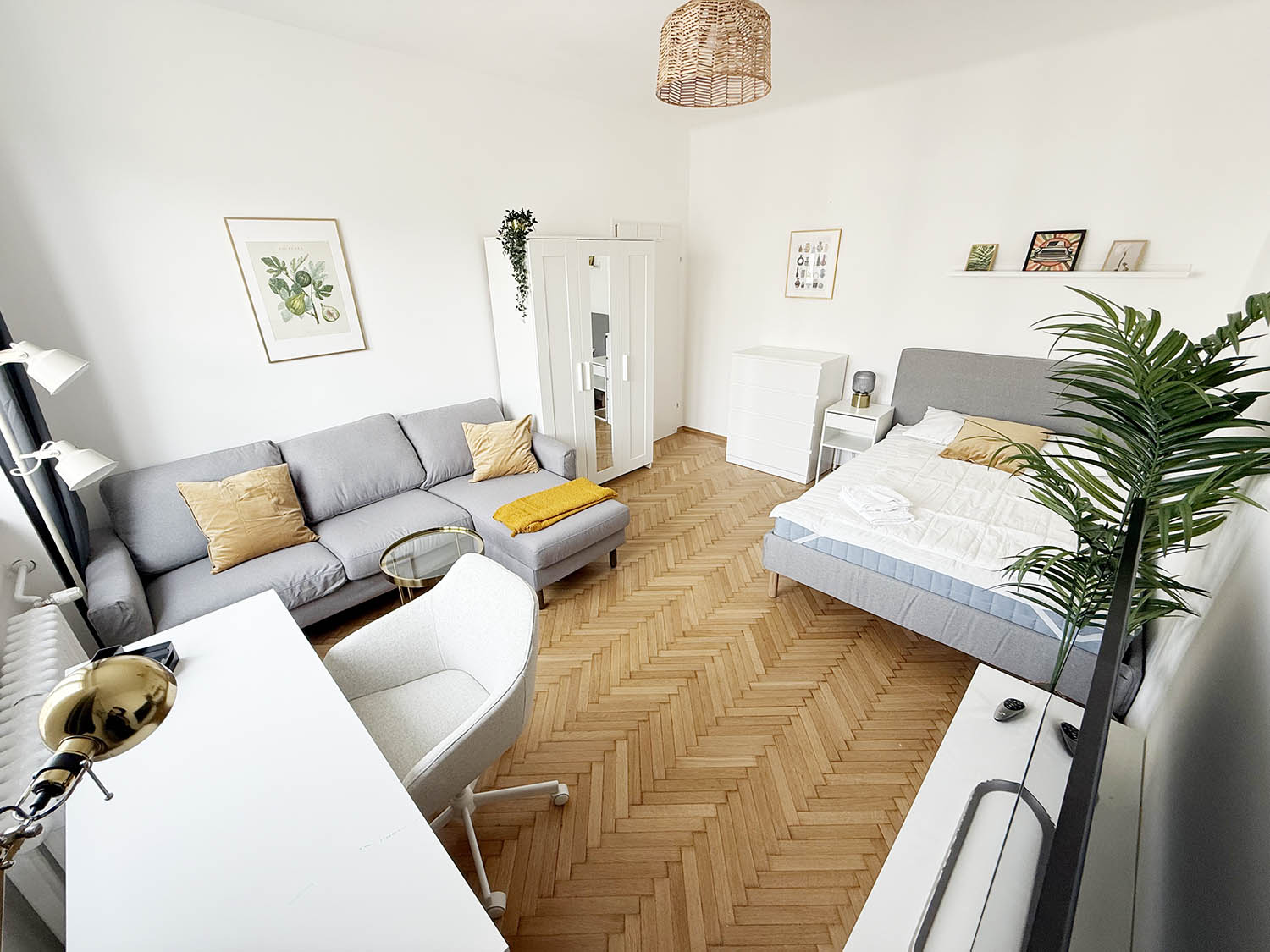 This nice room (ROOM 1 IN THE FLOOR PLAN) is located directly at one of Vienna’s best known and old institutions – the Naschmarkt. Vienna’s best-known market has around 120 market stands and restaurants for a huge culinary offering ranging from Viennese to Brazilian, from Japanese to Italian. The Naschmarkt has developed into a meeting point for young and old. Also the Flea Market on Saturday is must for all people living in Vienna.