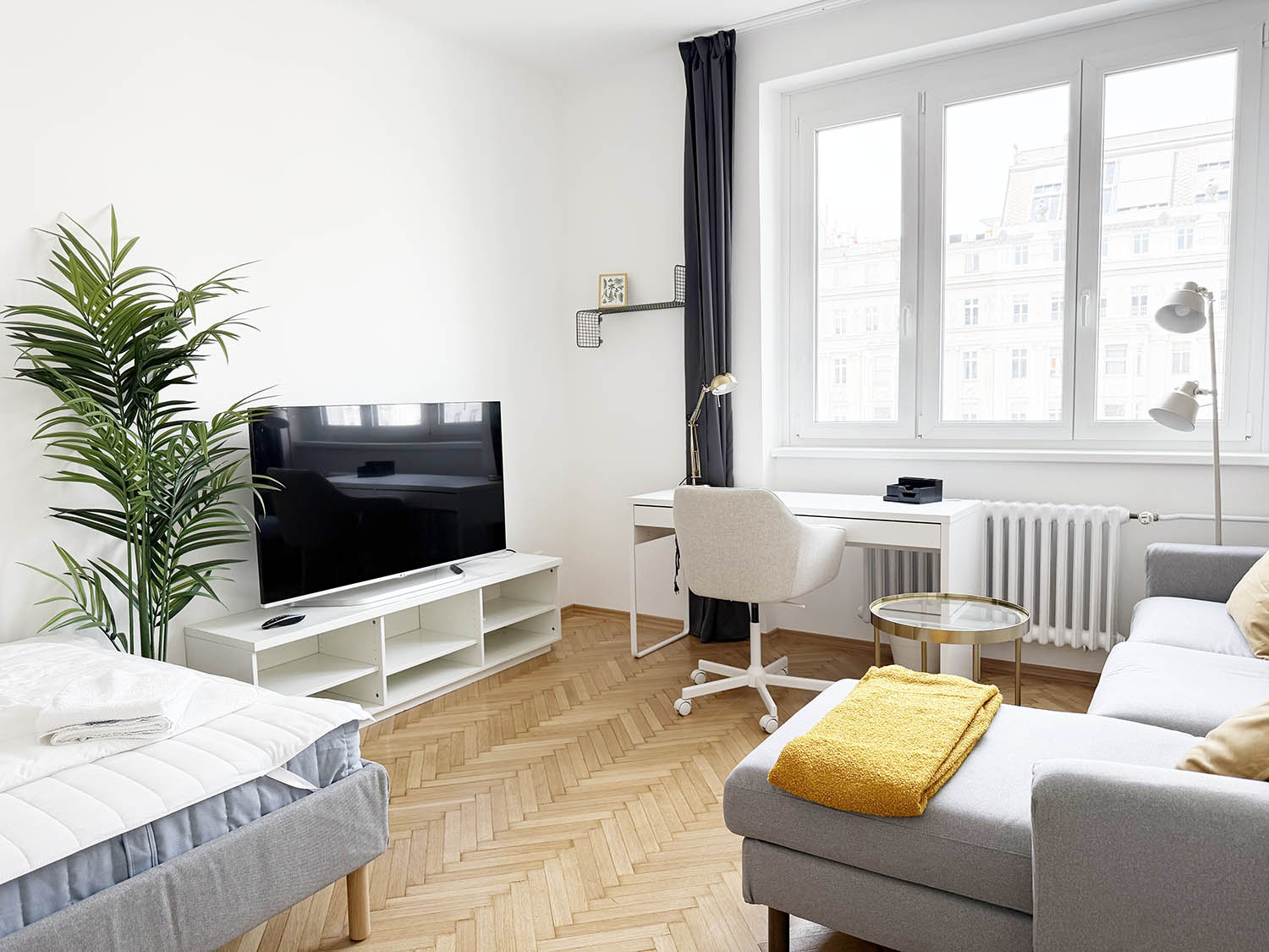 The neighborhood provides plenty of shopping opportunities and excellent connections to public transport and the very city center (U4 station “Kettenbrückengasse” only 100m away).