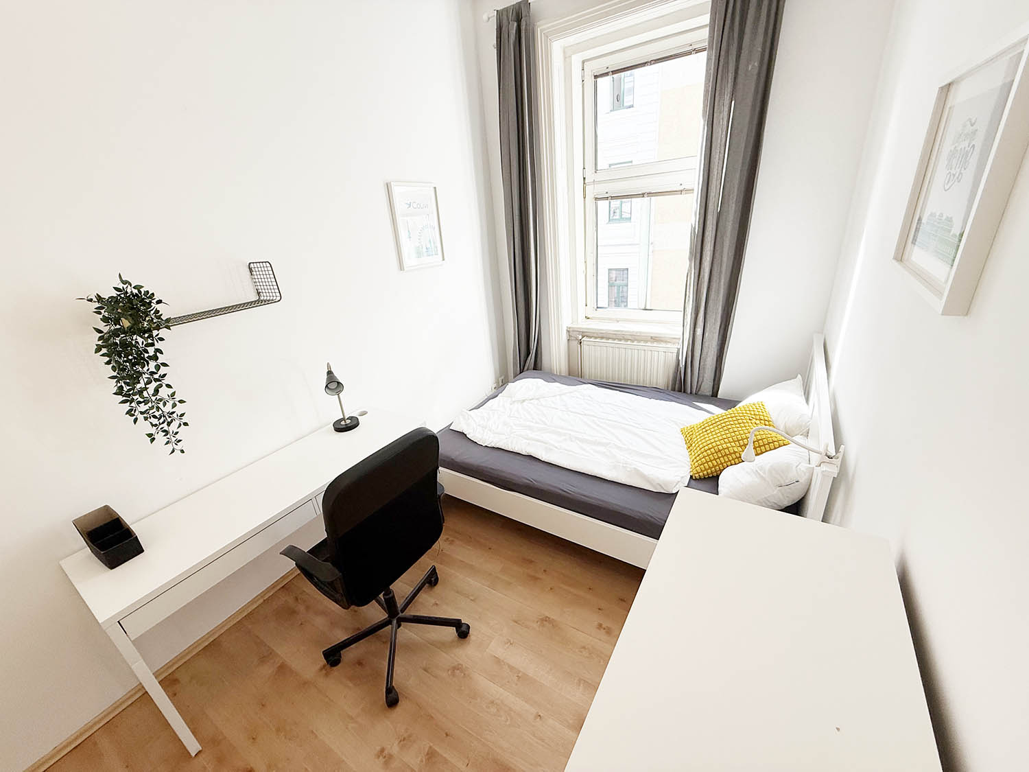The room (number 3 on the floor plan) is located in the second district of Vienna “Leopoldstadt” and is ideal for those who like to live centrally and at the same time enjoy the benefits of large green spaces. The Augartenpark and the Wiener Prater are located in the immediate vicinity and the famous Danube Canal is only a few minutes’ walk away. In the summer, the Donauinsel, located in the north, is a great place to enjoy the warm days and cool off in the river.