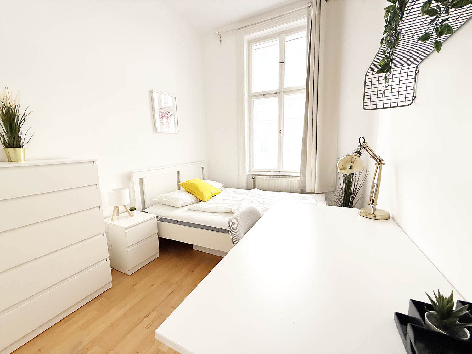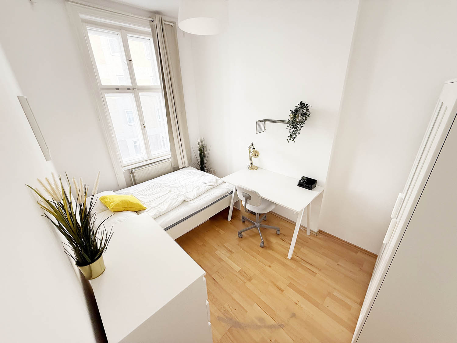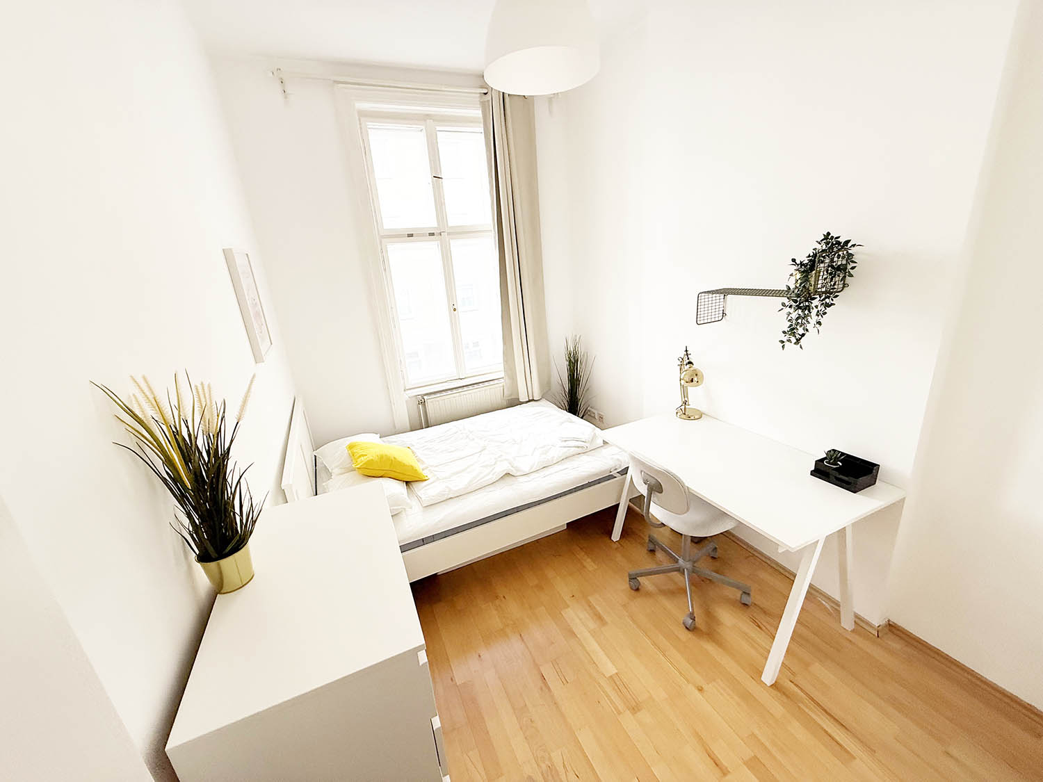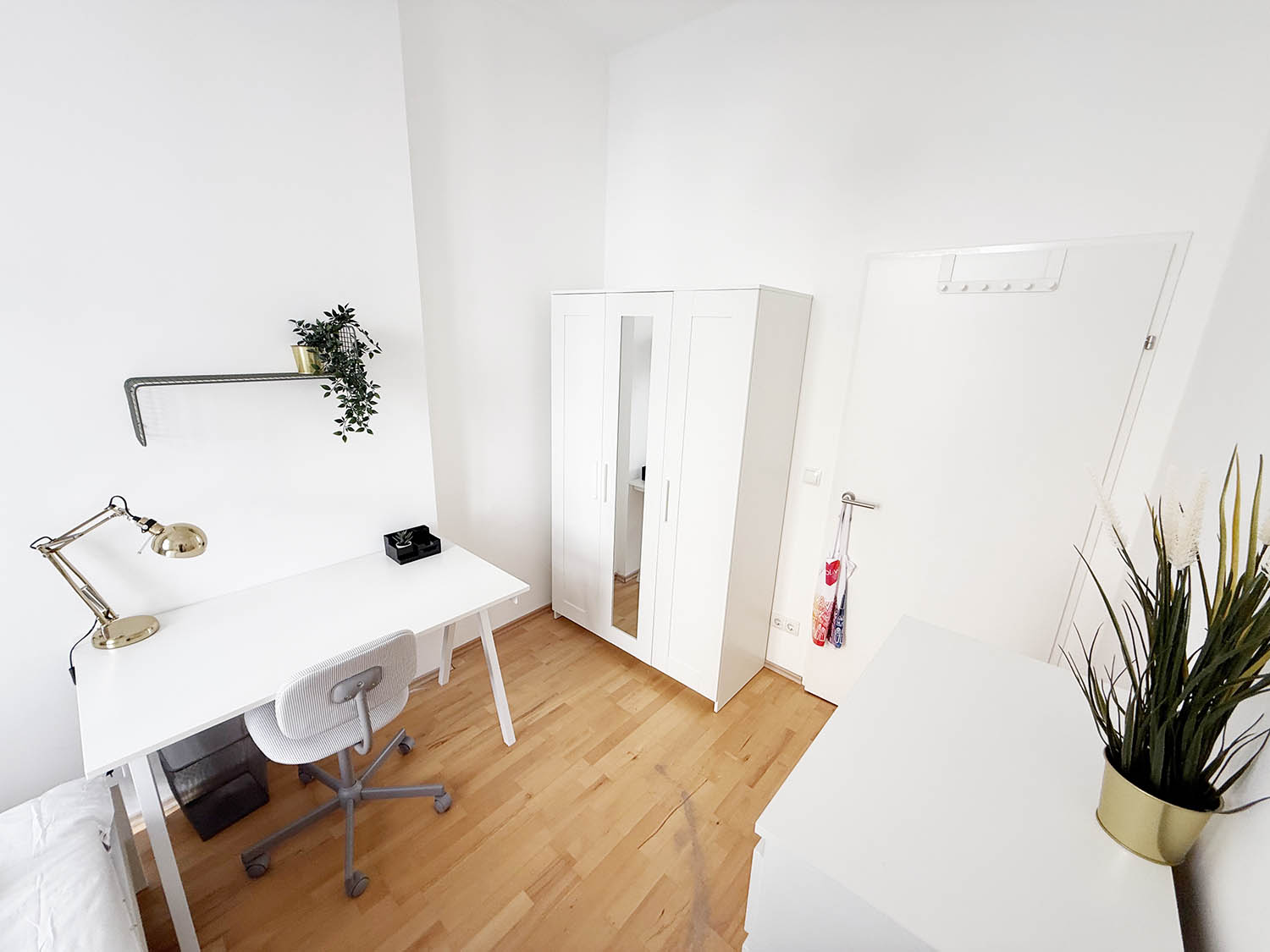 The room (number 2 on the floor plan) is located in the second district of Vienna “Leopoldstadt” and is ideal for those who like to live centrally and at the same time enjoy the benefits of large green spaces. The Augartenpark and the Wiener Prater are located in the immediate vicinity and the famous Danube Canal is only a few minutes’ walk away. In the summer, the Donauinsel, located in the north, is a great place to enjoy the warm days and cool off in the river.