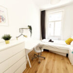 The flat itself is newly renovated (new bath, new kitchen, floor heating, new everything), and has a nice kitchen, where you can kick back with your flatmates and cook together. It is located on the ground floor but facing the quiet backyard of the property. In 400m walking distance to the U6 stop “Volksoper” and in 600m the U4 stop “Friedensbrücke” which takes you anywhere in the city in only a couple of minutes. Also the tram line 1 along the ring and lots of bus stations are super close by. If you are planning to get a bike, there is also a space for it on the property.