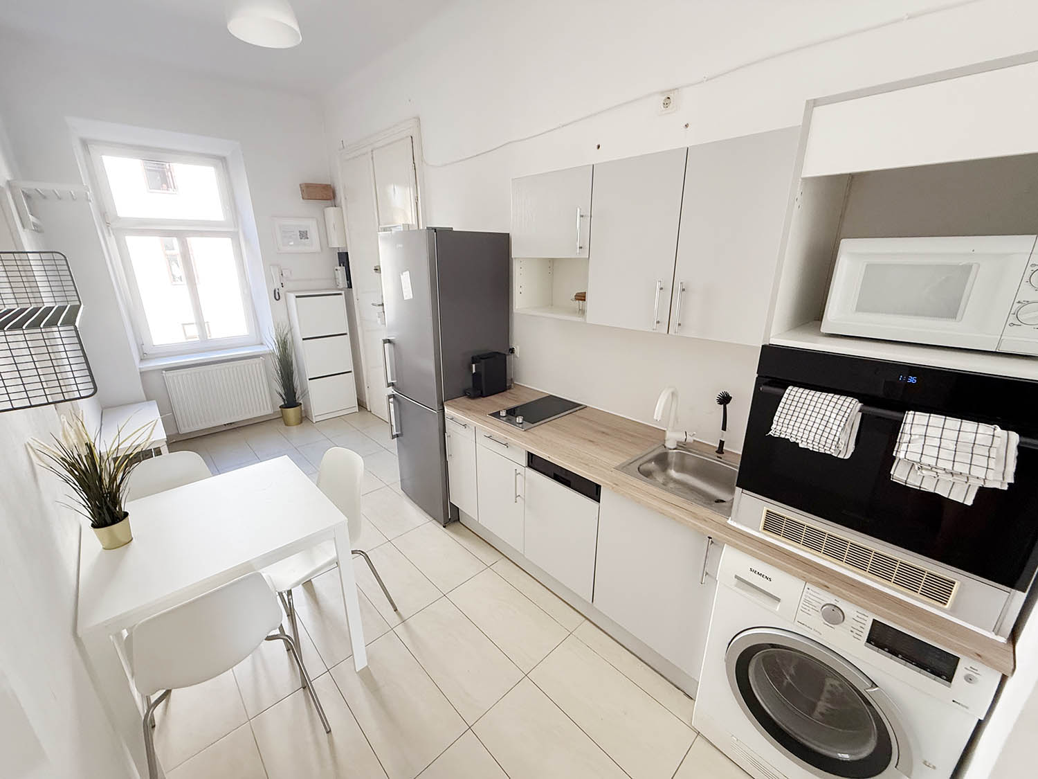 You’ll find everything from supermarkets, bakeries, cafés, and bars to parks and cultural institutions like the Volksoper and WUK. Perfect for urban living with easy access to Vienna’s green areas and vineyards.