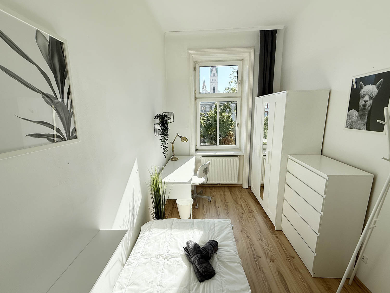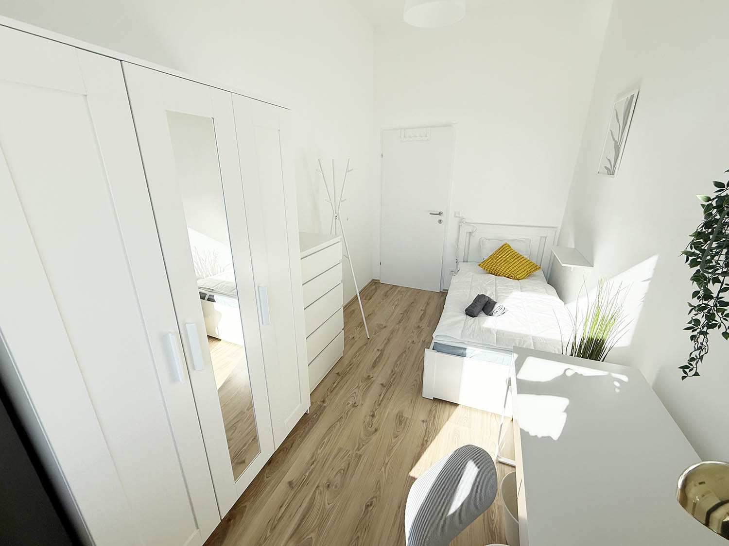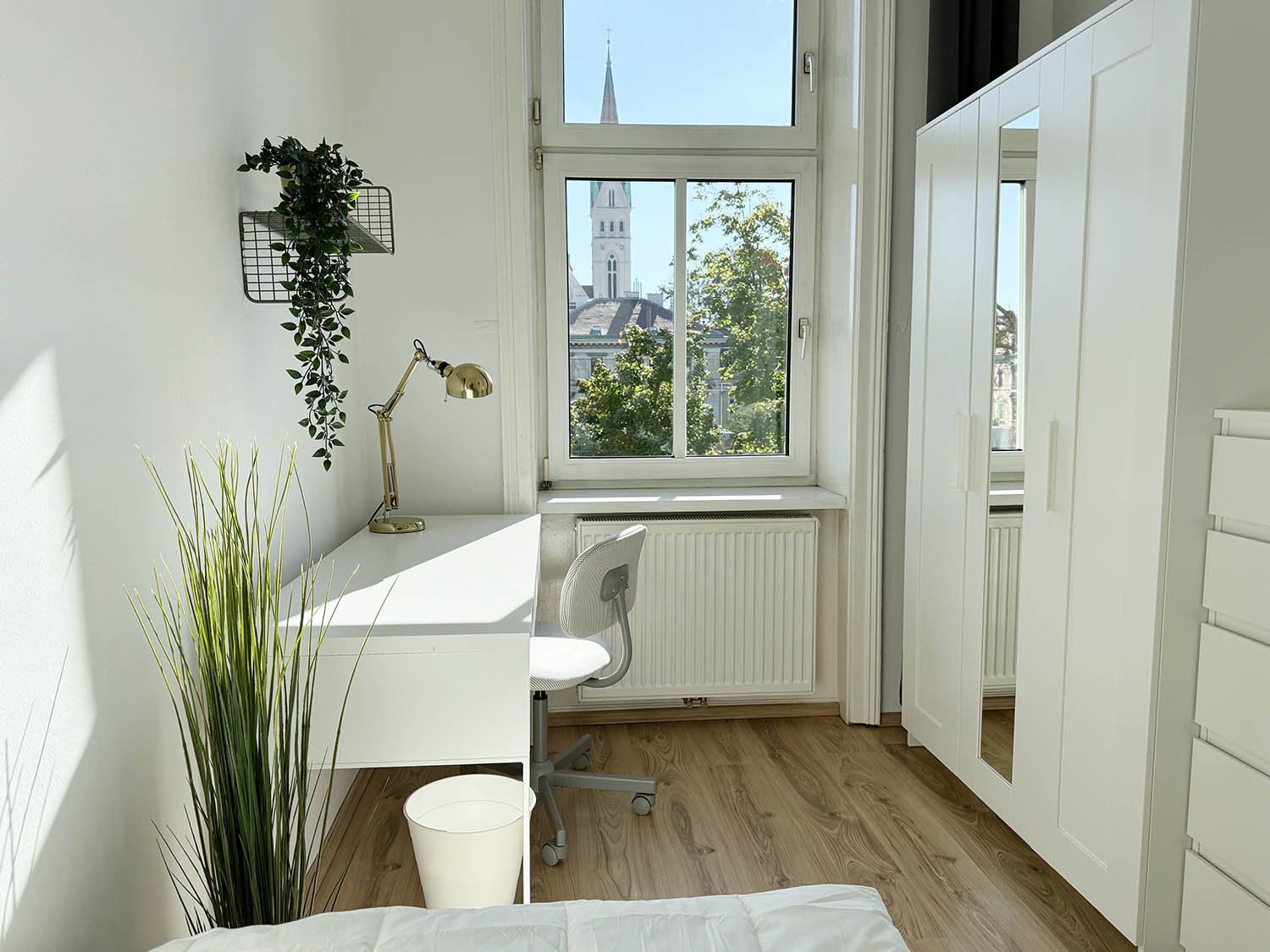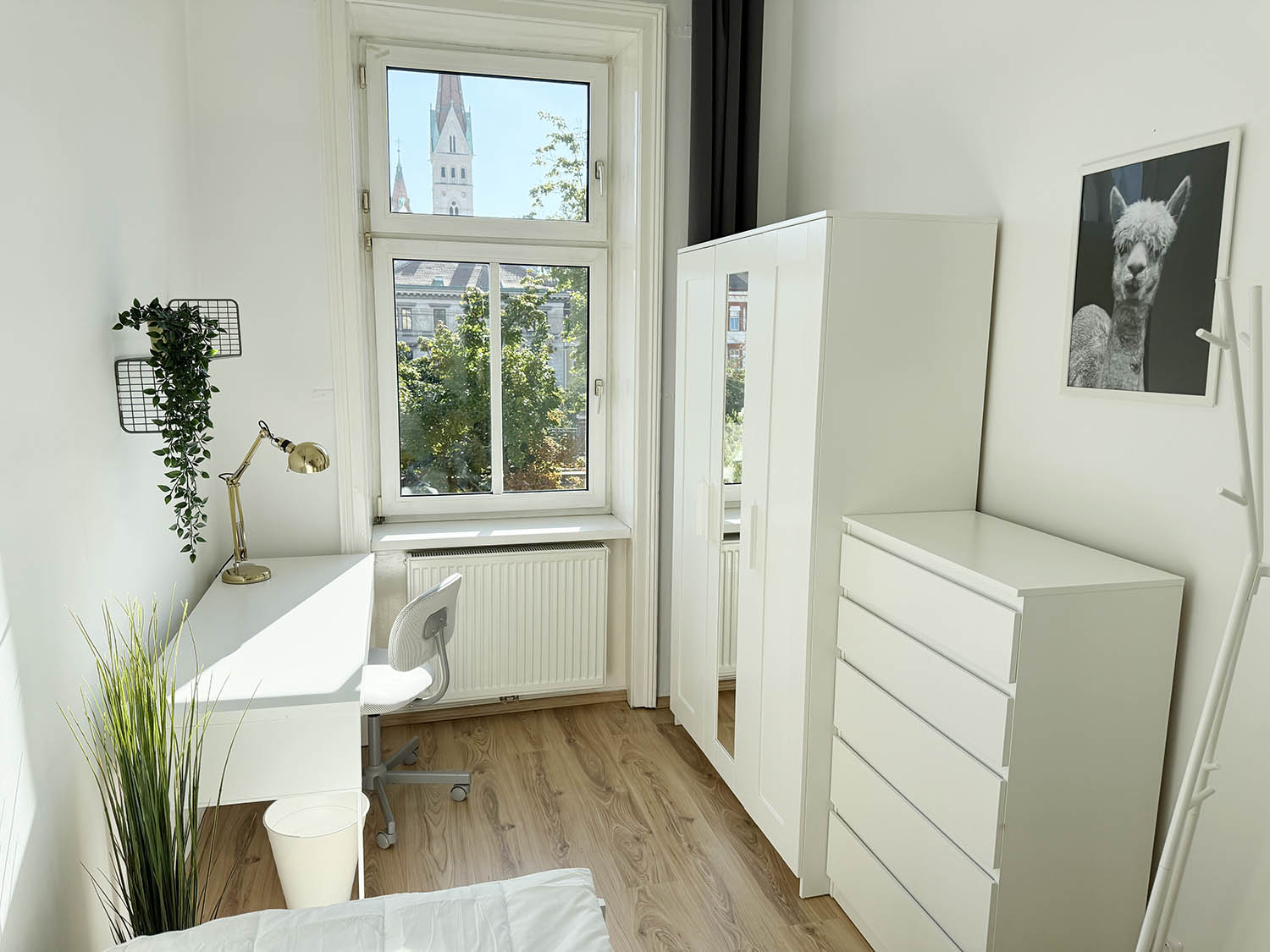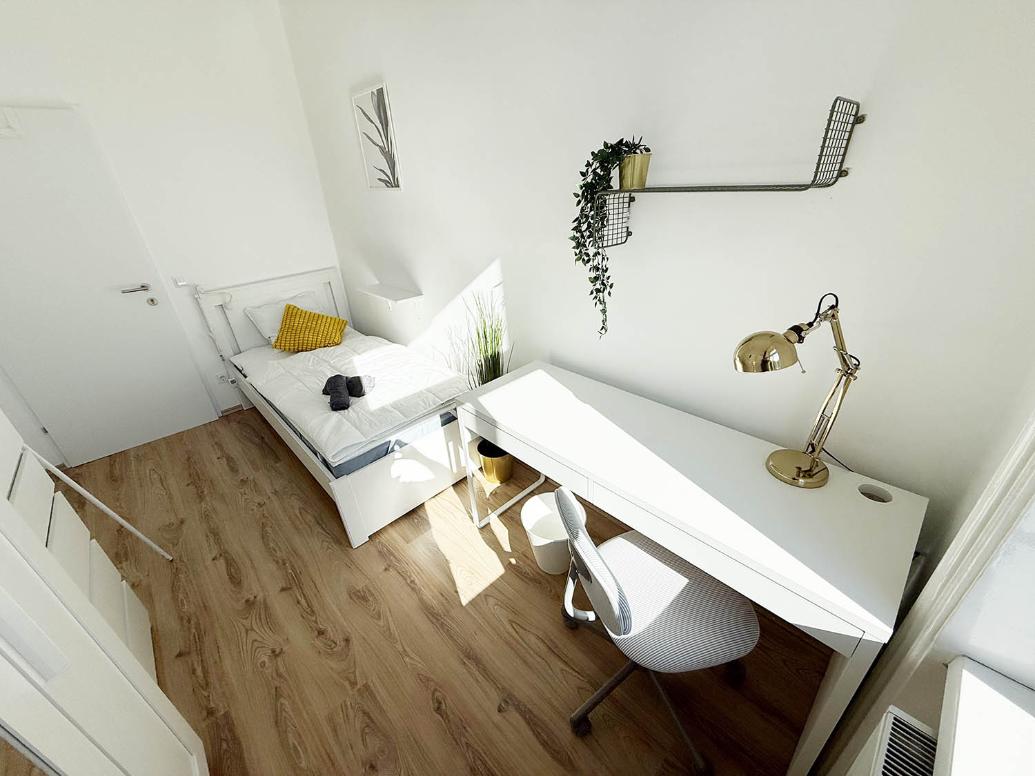 With a comfortable bed, fresh linen, wardrobe and a workspace, washing-machine, hair drier and so on, you will have everything you need and more. Everything (heating, electricity, internet etc.) is included in the price, so you can move in directly without worrying about anything.