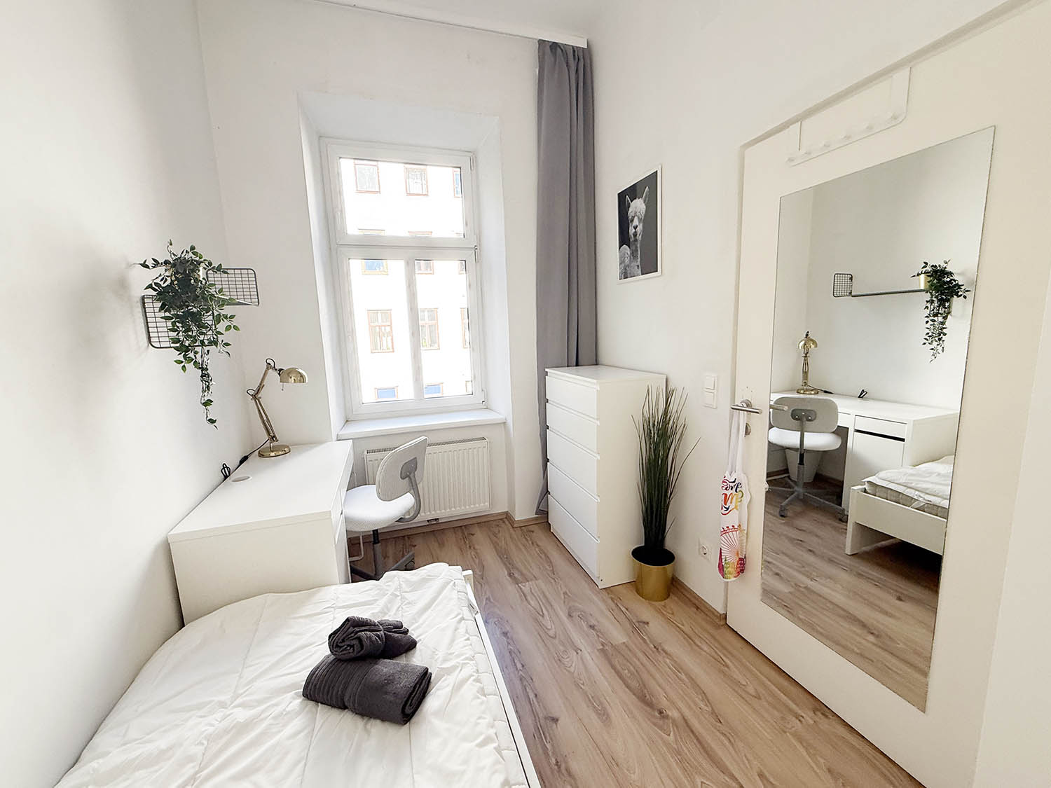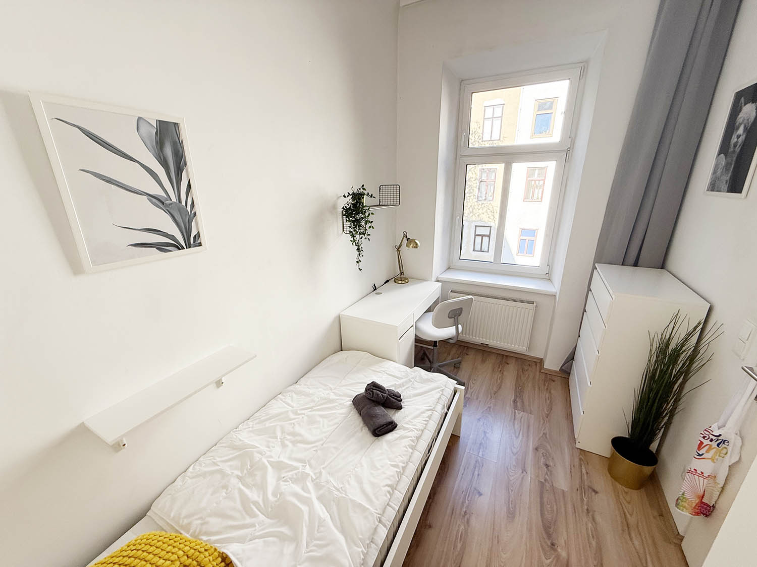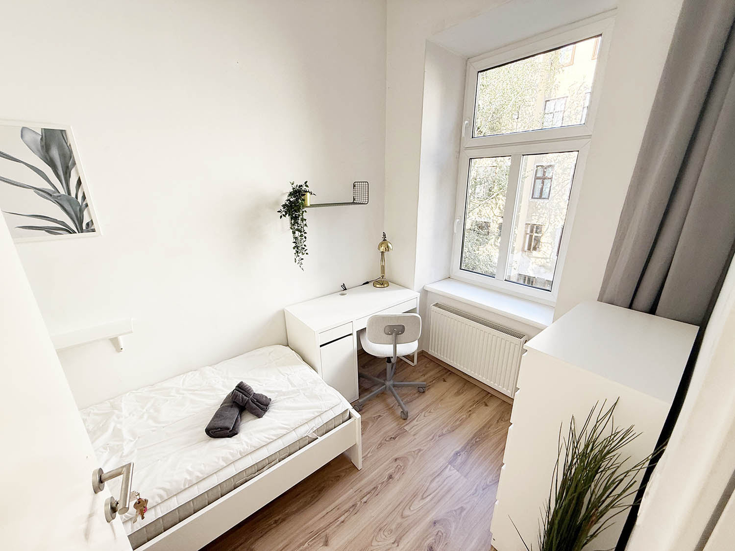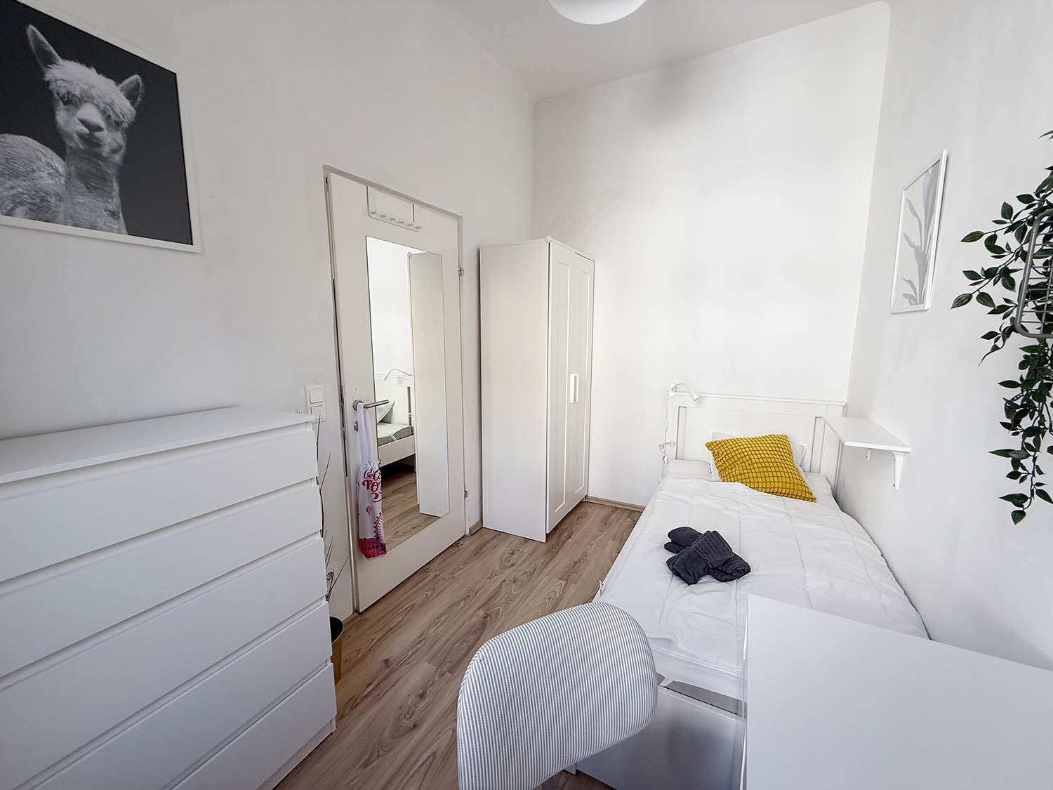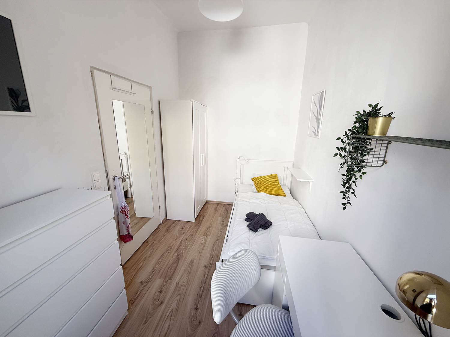 With a comfortable bed, fresh linen, wardrobe and a workspace, washing-machine, hair drier and so on, you will have everything you need and more. Everything (heating, electricity, internet etc.) is included in the price, so you can move in directly without worrying about anything.