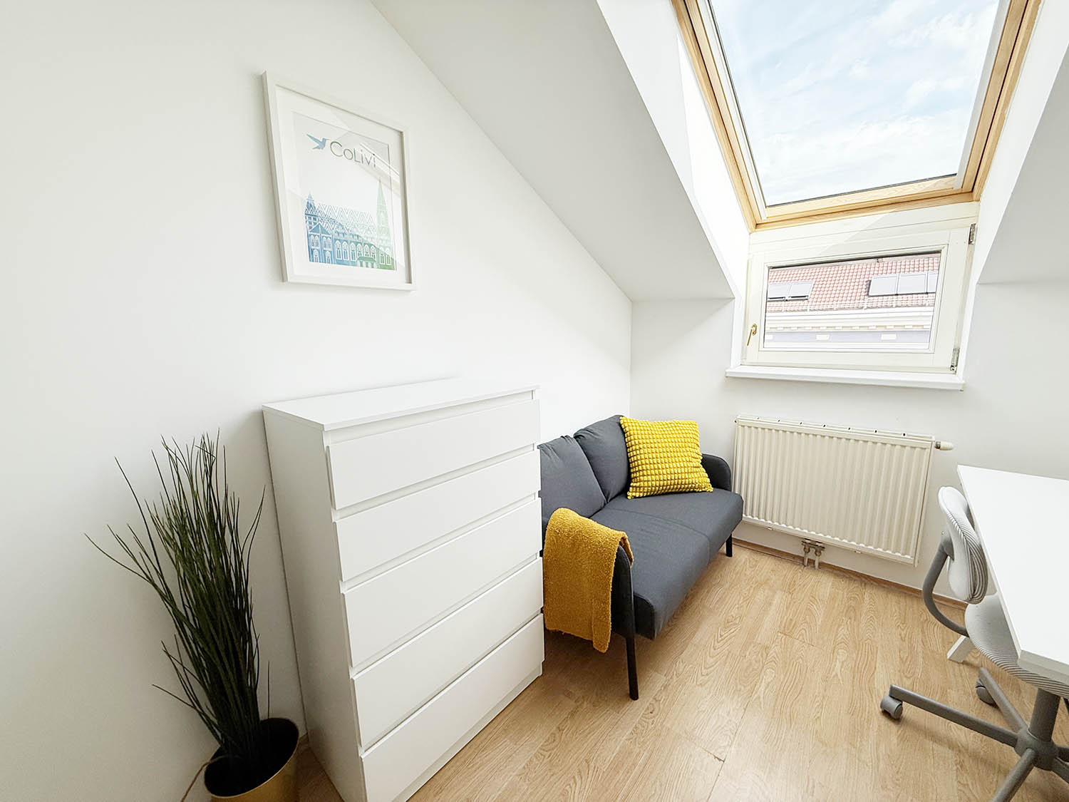 You are going to have everything you need. A bed with fresh linen, wardrobe and a workspace (Desk and chair). Everything is included in the price.